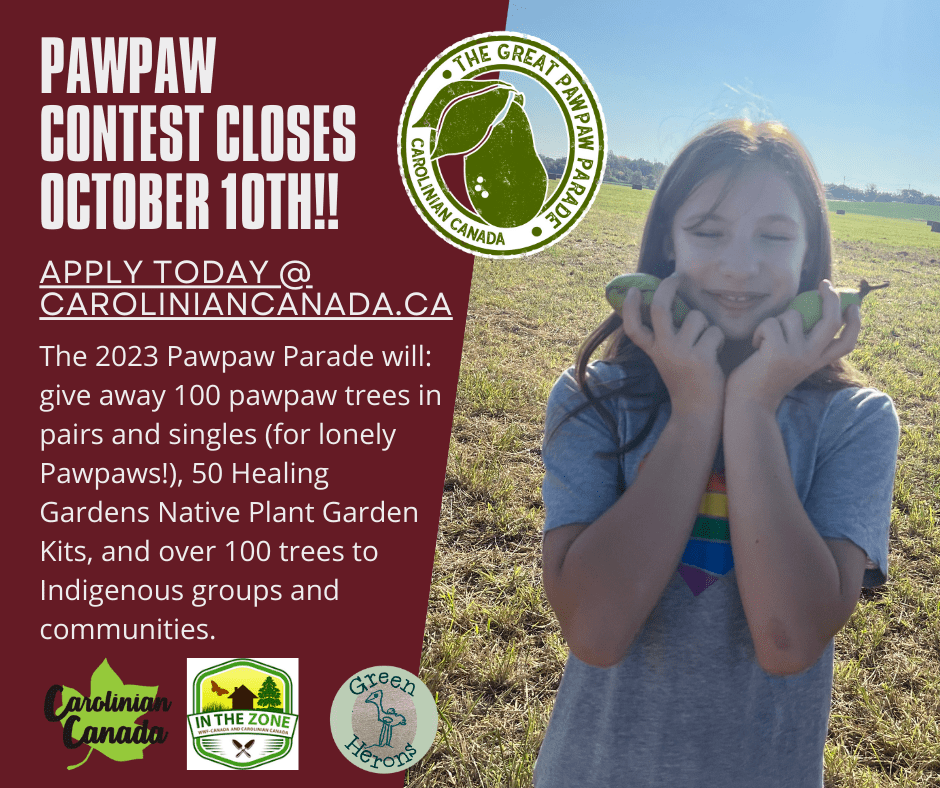 If you would like to apply to adopt pawpaws or a Native Plant Garden Kit, apply below and pick The Green Herons as your pickup location. Submit your story, and you may be selected to receive either trees or a kit!