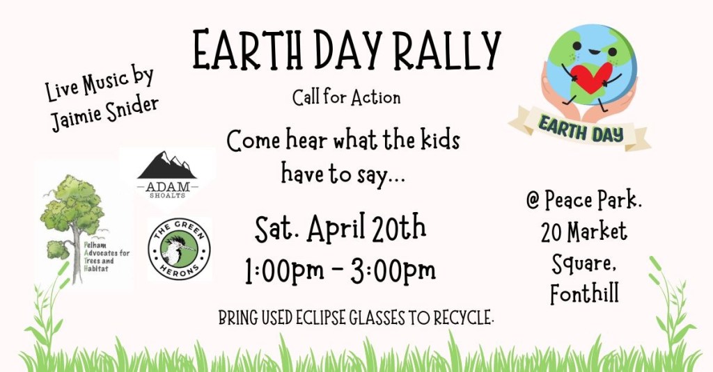 We are happy to announce the release of our Earth Day video that will hit social media on Saturday. Our youth will be at the Pelham PATH Rally in Fonthill from 1-3 on Sat. April 20th spreading their important message and selling some cool swag to raise money for their greenhouse!!
