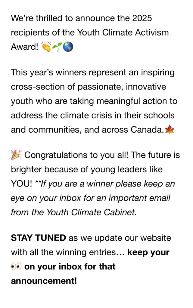 YOUTH CLIMATE ACTIVIST AWARD!!