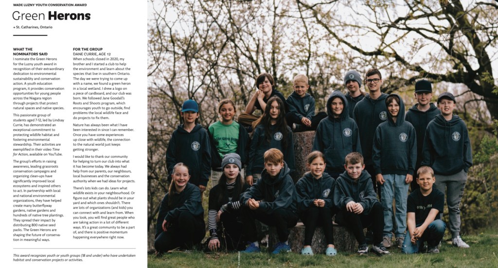 A great big well deserved shout-out to all of our youth for receiving the prestigious Wade Luzny Youth Conservation Award from the Canadian Wildlife Federation!!